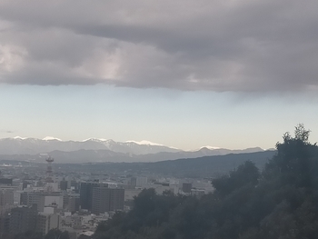 今度は沼津駅周辺の香貫山香陵台からの景色です。時間の関係上さらに奥の展望台等にはいっていません。天気は雲が多くあいにくですが、ほんのすき間から富士山が見えました。