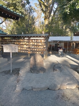 源頼朝と北条政子が腰掛たとされる石です。腰掛石です。